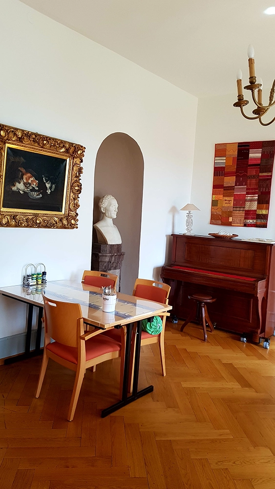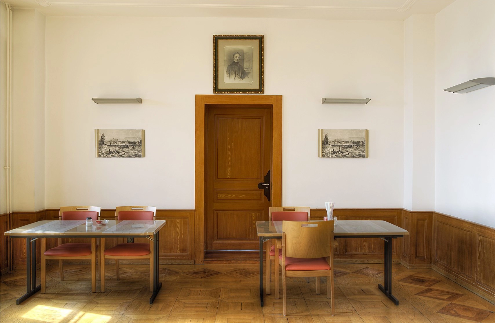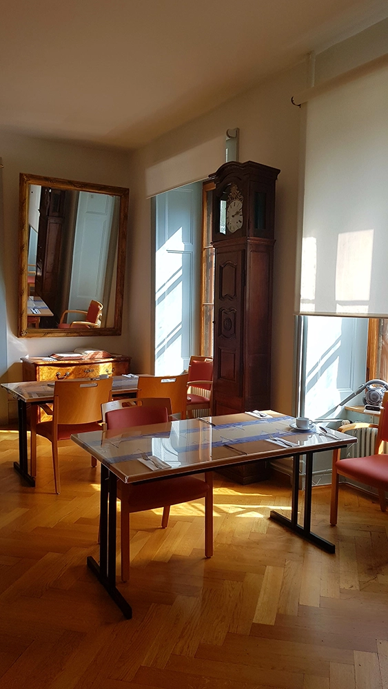 Les visiteurs peuvent, s’ils le souhaitent, prendre le repas en compagnie d’un pensionnaire pour un prix fort raisonnable.